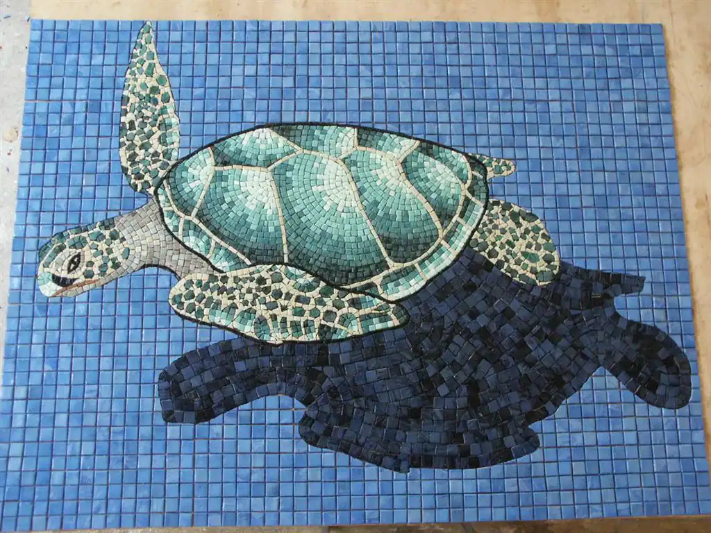 Turtle pool mosaics are custom-made pool tiles that feature different types of turtles, including sea turtles, baby turtles, and giant turtle tiles. They can be installed in your swimming pool to add a unique touch to your backyard. The possibilities for designs are limitless since everything is custom-made.