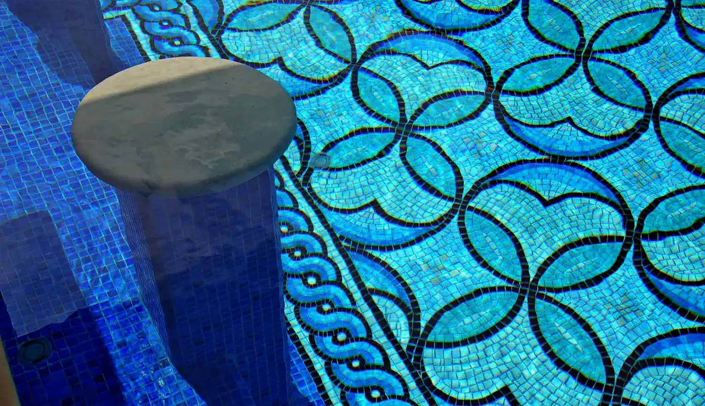 This project reflects our approach to custom mosaic pool art: taking inspiration from world-class design and translating it into handcrafted work that fits the scale, style, and architecture of the site.