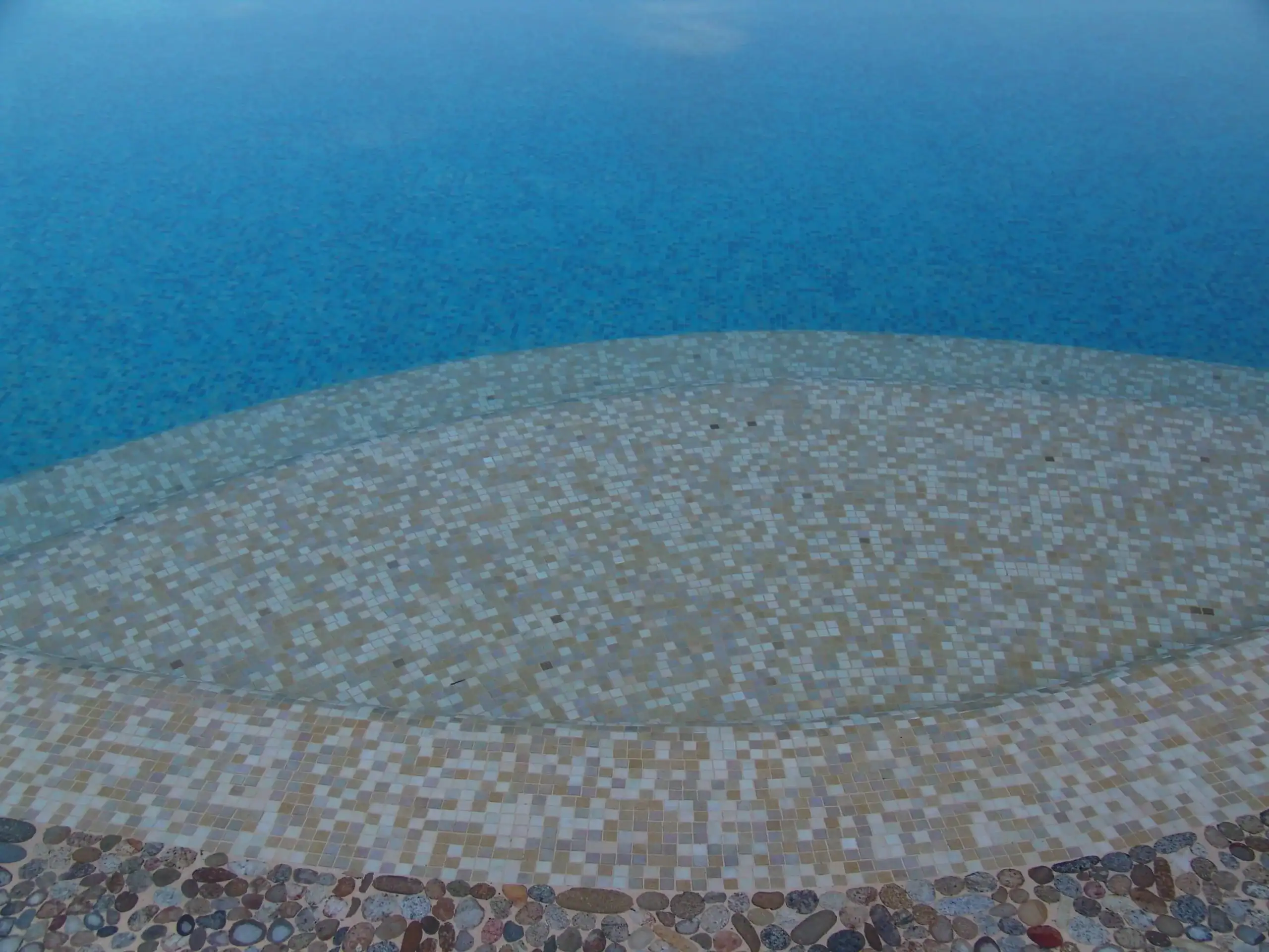 River rock mosaics are known for their variation in tone and shape, which gives the finished surface a unique character. Unlike uniform materials, this approach ensures that no two sections of the coping are exactly the same.